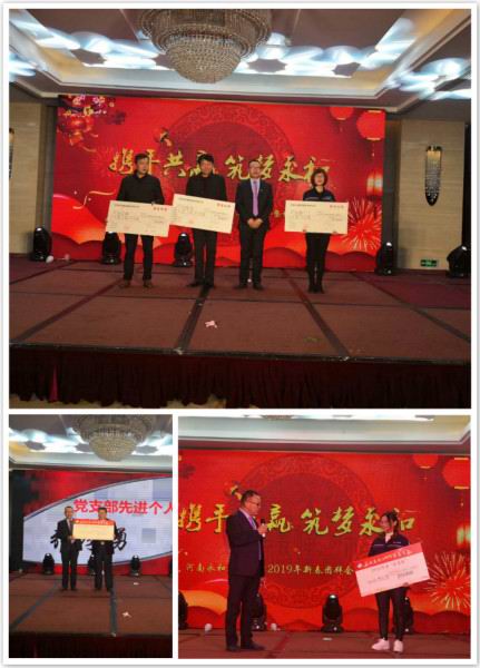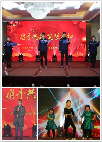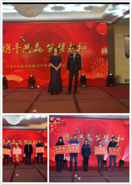 金戈鐵馬聞?wù)鞴?,只爭朝夕啟新程?019年1月26日下午,“攜手共贏筑夢(mèng)永和”——河南永和建設(shè)集團(tuán)2019年新春團(tuán)拜會(huì)暨頒獎(jiǎng)典禮在錦江國際酒店隆重召開,信陽市政協(xié)副主席、市工商聯(lián)主席陳豫,信陽市平橋區(qū)政協(xié)副主席陳明德、信陽市委統(tǒng) 戰(zhàn)部辦公室主任楊輝、信陽市平橋區(qū)工商聯(lián)主席張虹、商城縣、羅山縣、五里辦事處等多位領(lǐng)導(dǎo)、信陽日?qǐng)?bào)社、信陽電視臺(tái)等多家媒體領(lǐng)導(dǎo)及新聞?dòng)浾摺⒑幽嫌篮徒ㄔO(shè)集團(tuán)有限公司全體員工及家屬、合作商,社會(huì)友人出席了本次團(tuán)拜會(huì)。大家歡聚一堂,辭舊迎新、表彰、文藝展演,共同度過了振奮人心又愉快難忘的時(shí)光。