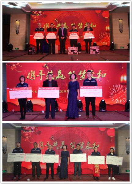 團(tuán)拜會(huì)中間還穿插了抽獎(jiǎng)環(huán)節(jié),隨著各等獎(jiǎng)項(xiàng)的抽取,不斷掀起團(tuán)拜會(huì)的高 潮。同時(shí),團(tuán)拜會(huì)還揭曉了2018年為永和集團(tuán)作出突出貢獻(xiàn)的各大獎(jiǎng)項(xiàng)。基層、中層、高層、團(tuán)隊(duì)獎(jiǎng)、特別奉獻(xiàn)獎(jiǎng)、精神文明獎(jiǎng)、合作伙伴獎(jiǎng)、效益獎(jiǎng)、年度黨員獎(jiǎng)、黨支部先進(jìn)個(gè)人獎(jiǎng)等多項(xiàng)獎(jiǎng)項(xiàng),對(duì)永和人過去一年為公司的付出表示肯定,為永和人的來年鼓足了干勁。